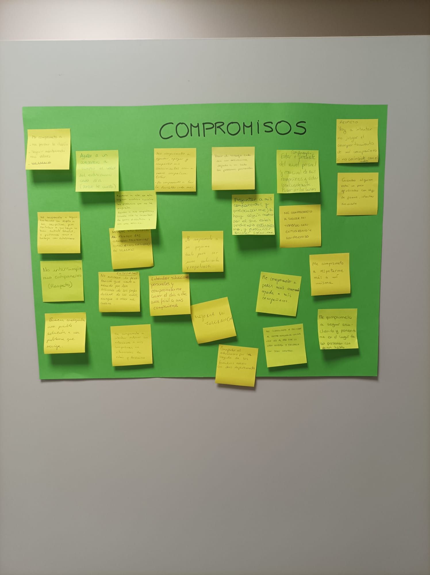 Al final de las dinámicas, invitamos a cada participante a hacer una reflexión personal sobre cómo los valores se aplican en su trabajo diario. Esta fue una de las partes más poderosas del taller, porque cada persona tuvo la oportunidad de comprometerse personalmente a llevar estos valores a la práctica. Algunos de los compromisos que surgieron fueron realmente inspiradores, como: